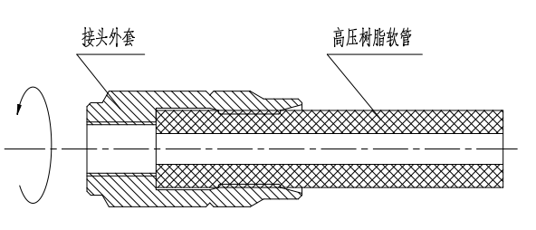 1) 將接頭外套逆時(shí)針?lè)较蛐D(zhuǎn),套在軟管上,并盡力旋到底。為便于安裝,可先在接頭外套內(nèi)螺紋或軟管表面涂抹一層油或脂。
