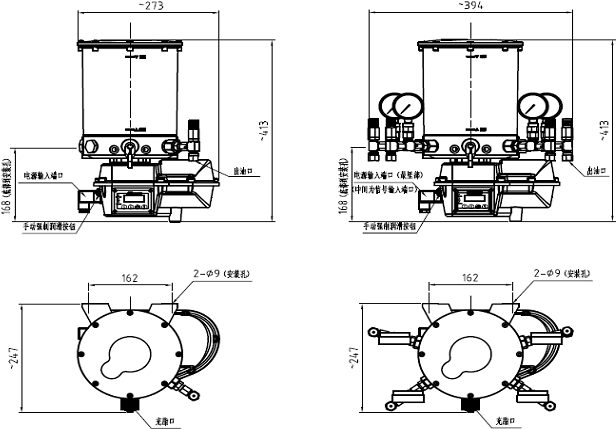 立的潤(rùn)滑系統(tǒng),可以定時(shí)定量的將潤(rùn)滑脂分配到各個(gè)潤(rùn)滑點(diǎn)。