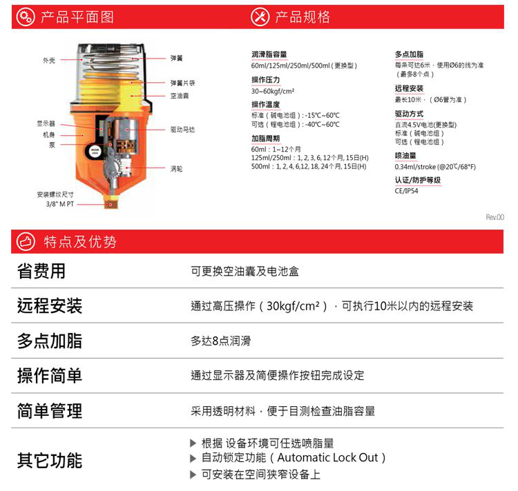 情況,特別適合野外電源不方便的,潤滑點較分散的場合。