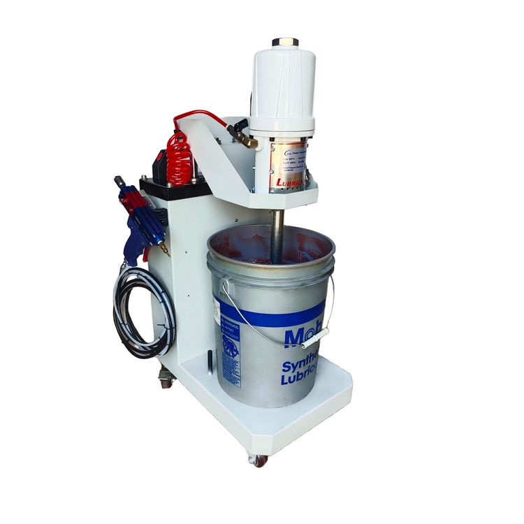 上配有壓油盤,可以刮掉桶壁上的油脂。氣動柱塞泵為雙作用氣缸,往復(fù)吸油,提高了注油效率。
